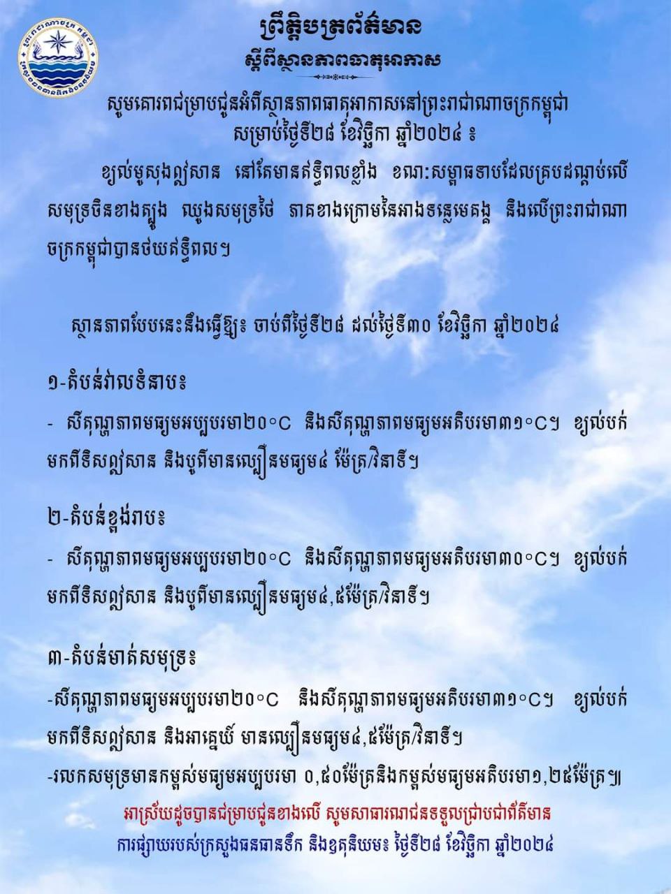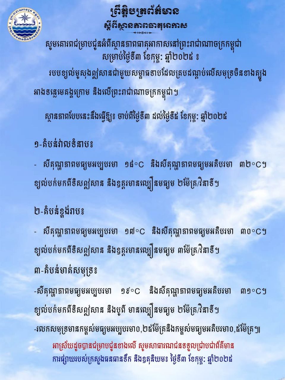 សេចក្តីជូនដំណឹងស្តីពី ធាតុអាកាស៕