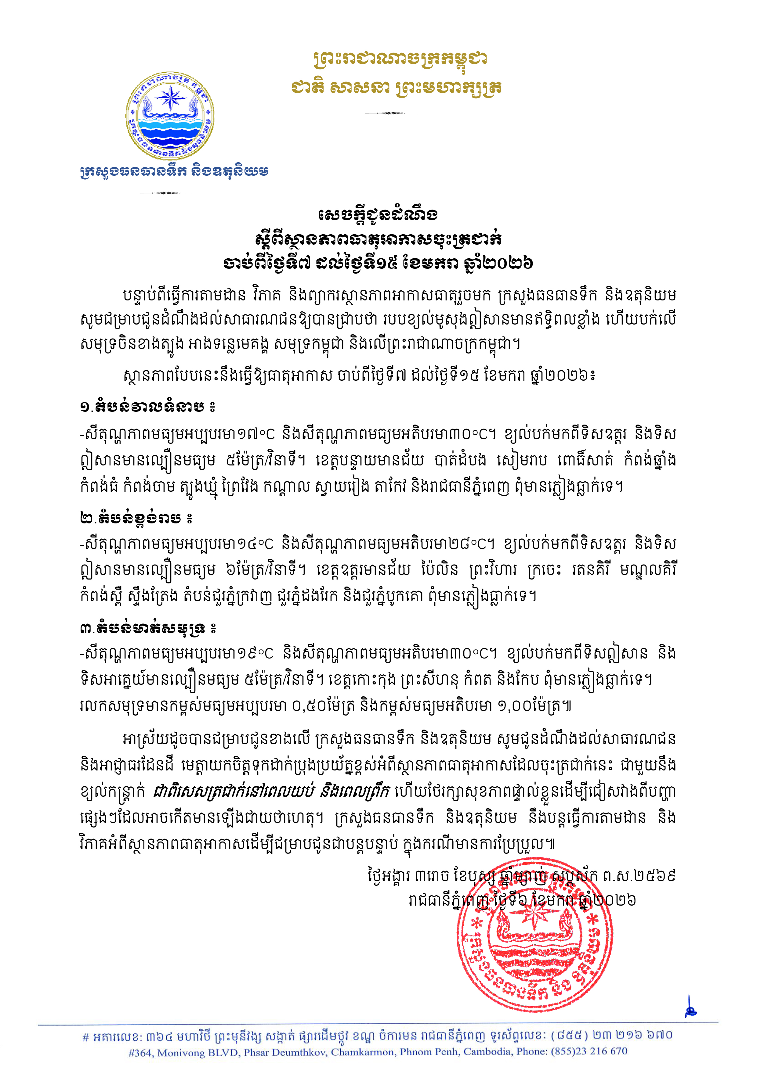 រៀបចំដោយនាយកដ្ឋានឧតុនិយម នៃក្រសួងធនធានទឺក និង ឧតុនិយម